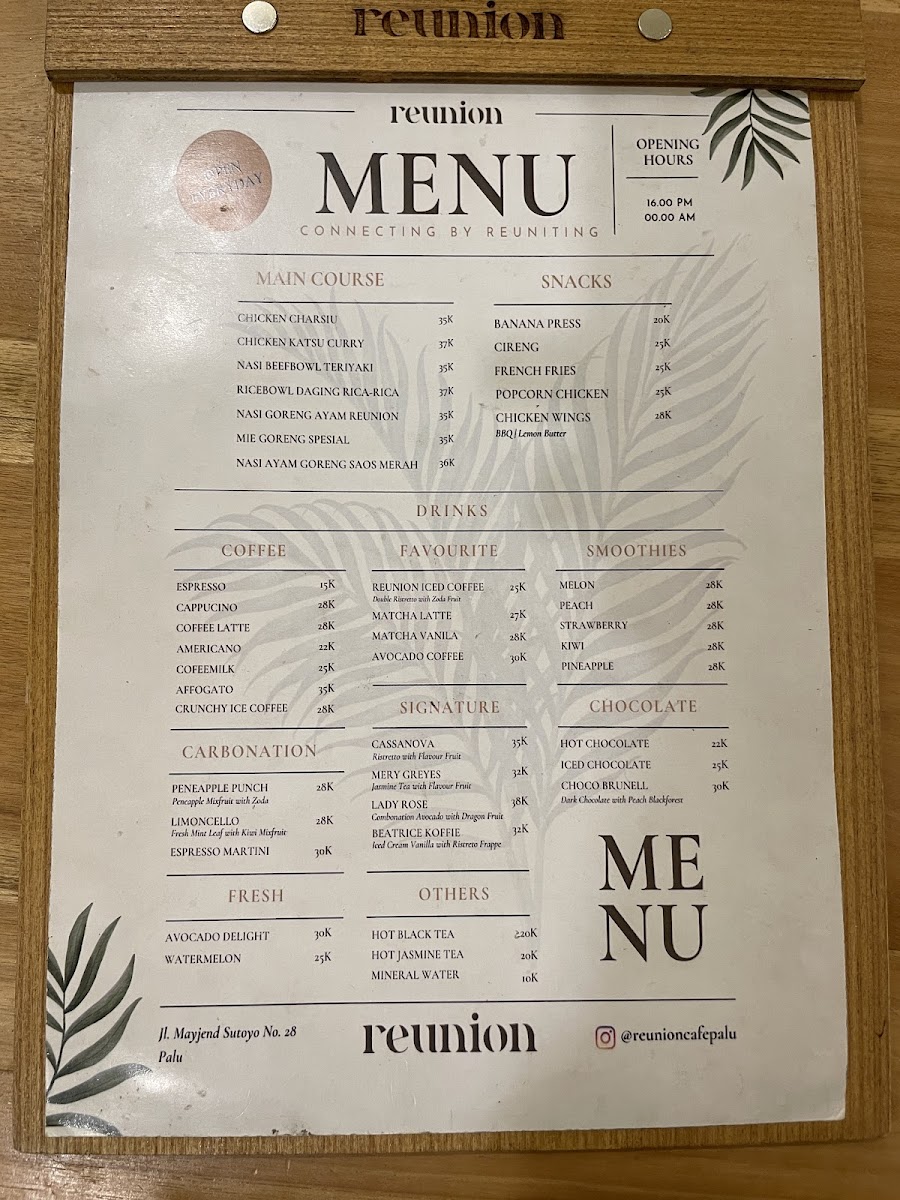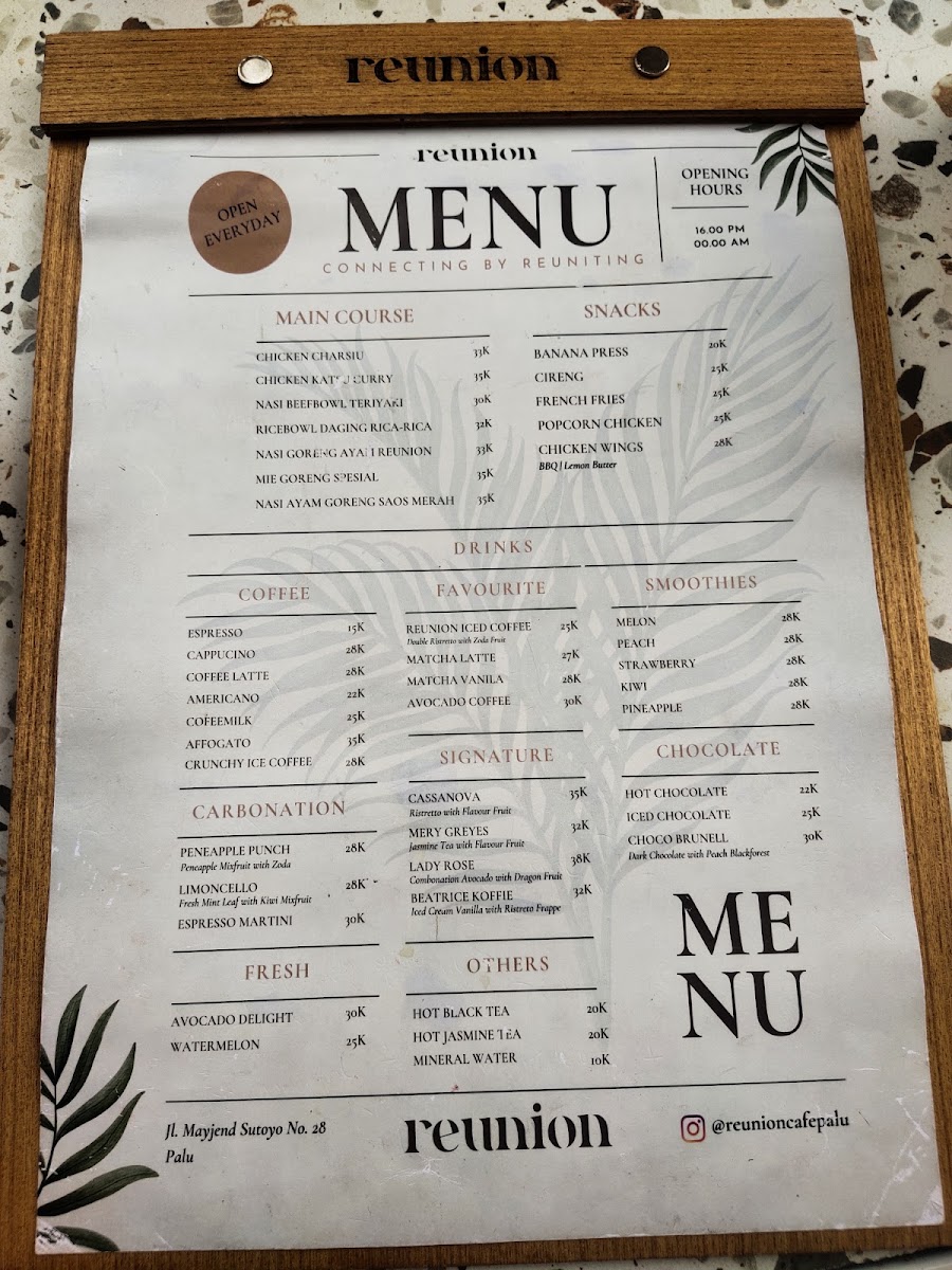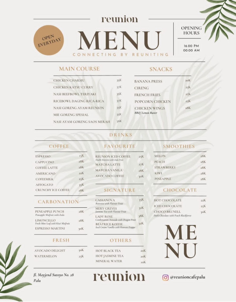 Reunion cafe Menu